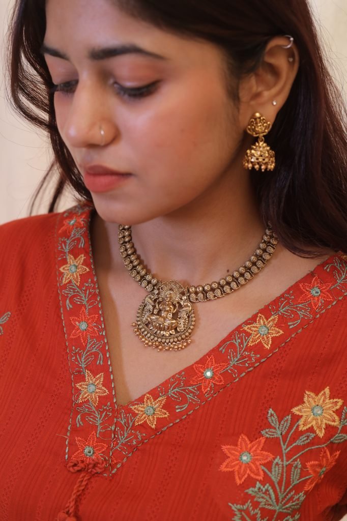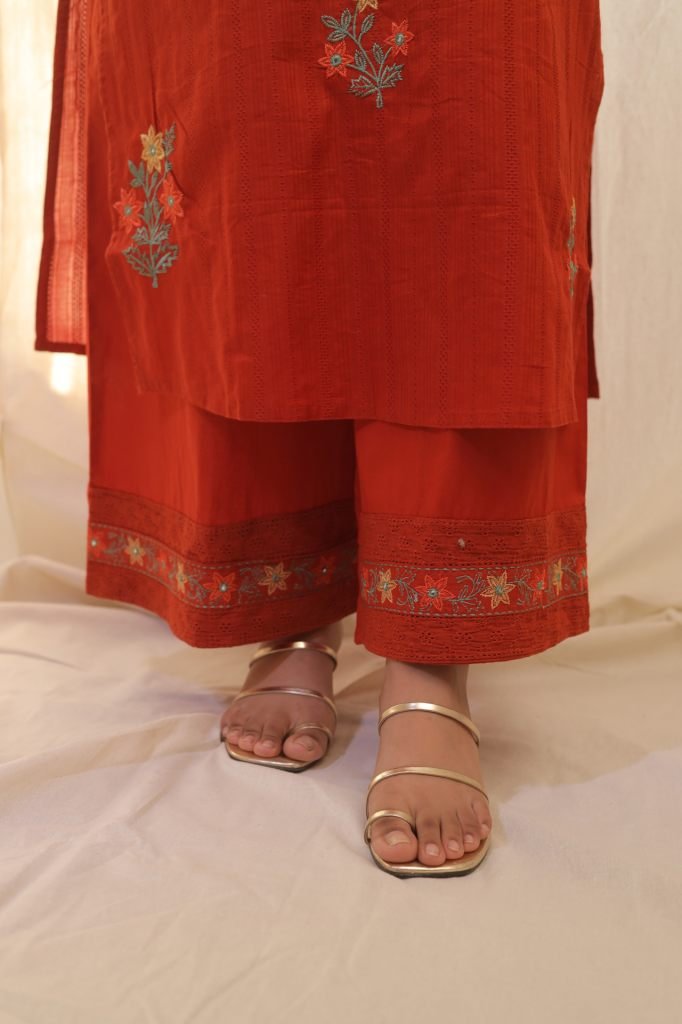 Orange Kurta set by Barnini Ethnic Best soft cotton material handwork of Embroidery
